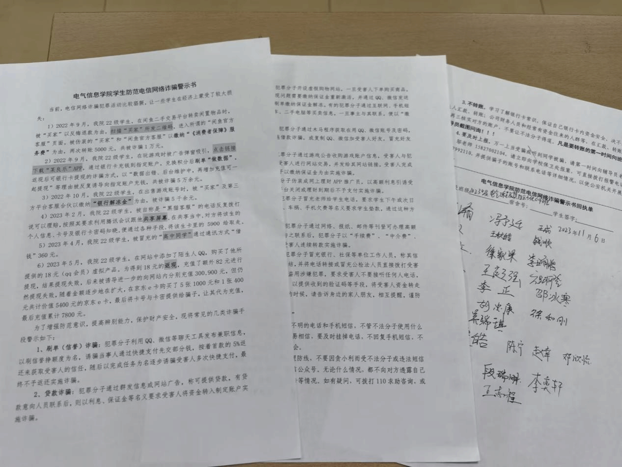 会后,同学们通过签署《防范网络诈骗承诺书》,不仅深入了解到诈骗的危害性,更以实际行动参与到防诈骗活动中,进一步增强了自身安全防范意识。